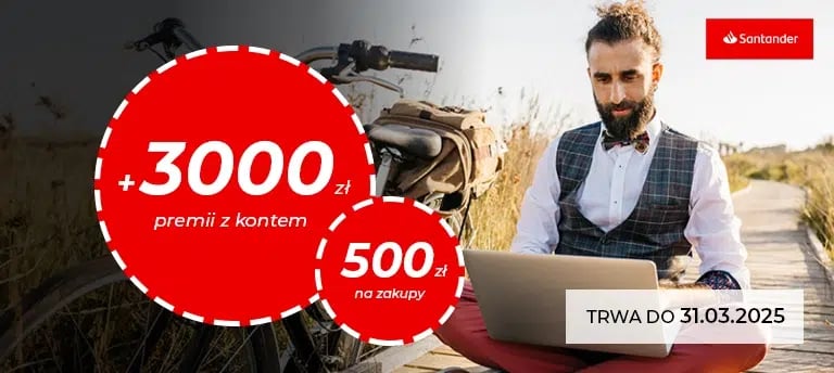 Absolutny HIT od Santander Banku! 3000 zł premii pieniężnej i 500 zł zł w bonach na zakupy.