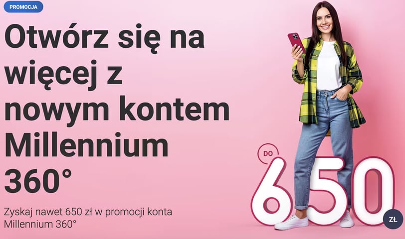 Otwórz się na więcej z nowym kontem Millennium 360° i zyskaj do 650 zł premii.